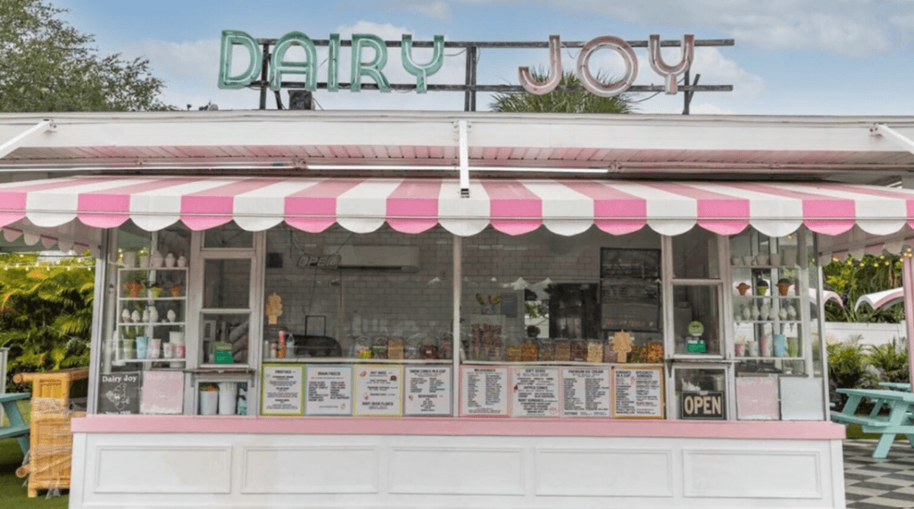 Delighting taste buds across South Tampa and beyond for over six decades, Dairy Joy is the place to be for old-fashioned ice cream. Opening its doors in 1958, there’s no better spot for a retro walk-up neighborhood ice cream parlor, complete with a drive-thru next door. Their soft serve comes in chocolate, vanilla, and swirl, which you can order in a cup or a cone. We recommend upping your soft serve with one of their dipped cones, offered in chocolate, butterscotch, cherry, and blue raspberry. But don’t stop with soft serve–they also have premium ice cream, milkshakes, snow cones, smoothies, floats, and more!